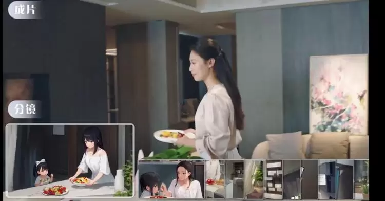 随后,将脚本创意提示词依次输入擎舵,可以快速生成分镜。AI生成分镜不止高效,而且画面形象生动,最终的广告成片也完全按照分镜进行。