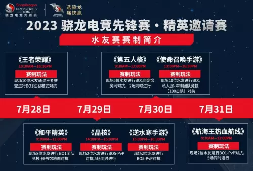 7月28日至7月31日,2023骁龙电竞先锋赛·精英邀请赛总决赛将在上海正式开赛!本届精英邀请赛将落地上海ChinaJoy骁龙主题馆,为广大玩家和电竞爱好者带来最顶尖的移动电竞赛事体验,让更多人享受顶级移动电竞赛事的乐趣。