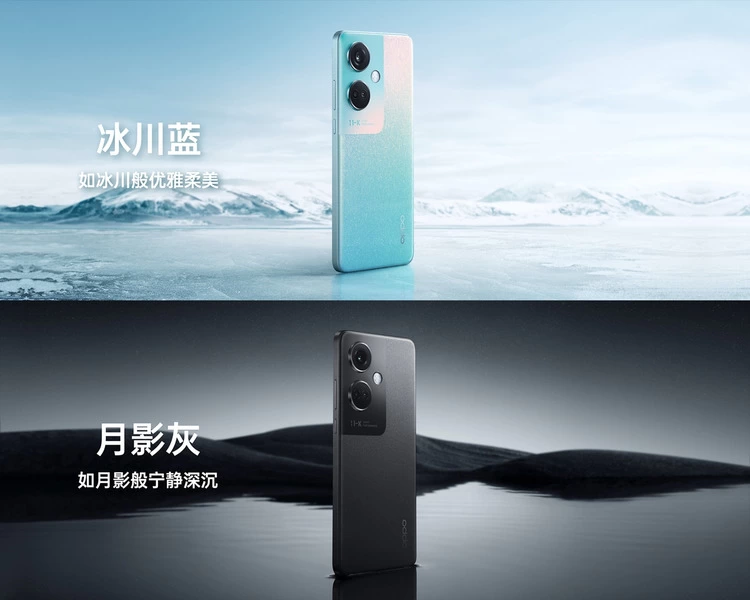 OPPO K11共有冰川蓝、月影灰共2款高颜值配色,前者采用同档位罕见的织羽流沙工艺,不同角度看会有霞光般的渐变效果;后者采用双倍立体镀膜的闪光砂工艺,视觉上犹如夜空中星光闪闪。