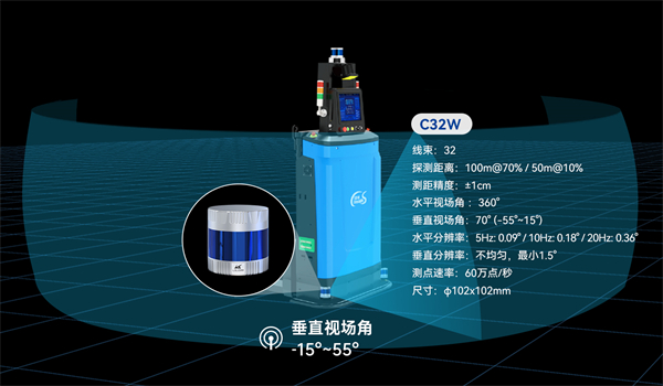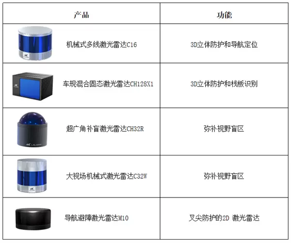 其中,“CH32R超广角补盲激光雷达”与“C32W大视场机械式激光雷达”是镭神智能专为各类移动机器人推出的两款专业补盲激光雷达 ,旨在为无人叉车等低速无人车辆提供更广阔的视野,实现三维立体防护,保障行驶及作业安全。