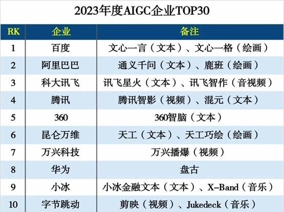 剪映智影万兴播爆等创新力突出 字节跳动腾讯万兴科技等上榜AIGC企业TOP30