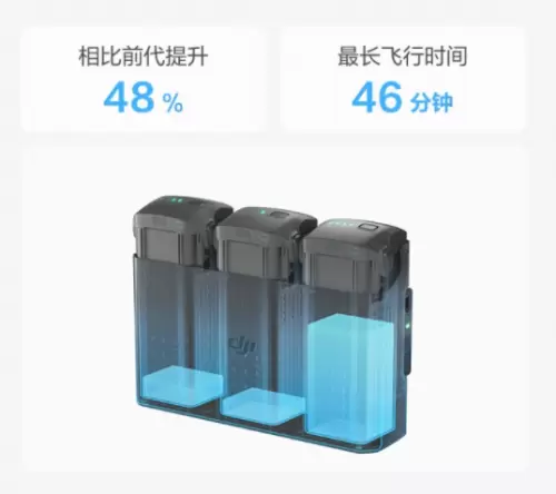 大疆Air3的首要亮点在于续航能力的提升,相较上一代产品,大疆Air3的续航时间提升了48%,飞行时间最长可达46分钟。消费者可在更长的续航时间内从容寻找理想机位,调整构图,起飞一次即可捕捉多个想要的镜头。