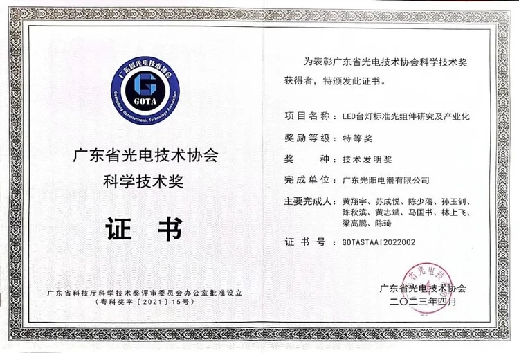 冠雅照明于2010年荣获“广东省工程技术研究开发中心”、广东省首批“专精特新企业”、并先后获得“广东省科技进步奖二等奖”、“中山市创新标杆企业”、2023年荣获广东省光电技术协会科学技术奖的技术发明奖特等奖等荣誉。