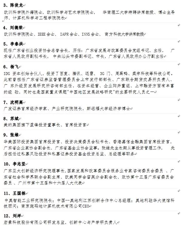 广东省创投协会名誉会长,李春洪会长对各位院士和专家的到来表示热烈的欢迎;提到对于人工智能,并不陌生,这十多年来,一直在关注和学习;对Schahram院士的人工智能模型构建表示了充分的肯定,如果能够推广起来,对社会将会有很多帮助;十分看好陈俊龙院士的两个项目,认为有巨大的社会意义和经济价值;对刘德荣院士的研究表示了浓厚的兴趣,期待早日与产业界打通;并认为Schahram主席阐述的国际人工智能产业联盟的构想十分宏大,广东省创投协会,愿意跟大家一起共同努力,一起合作。
