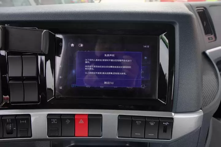 在安全性方面,这台乘龙H7整车匹配有FCW前碰撞预警、LDWS车道偏离预警、ESC电子稳定控制系统,除此之外,车辆还加持有液力缓速器以及缸内制动系统,在遇长下坡路段时,这两套系统能够保障车辆在足够安全的情况下也能保持高速行驶,下坡结束爬坡时无需再从0升档加速,同时能够有效延长刹车片以及轮胎的使用寿命。