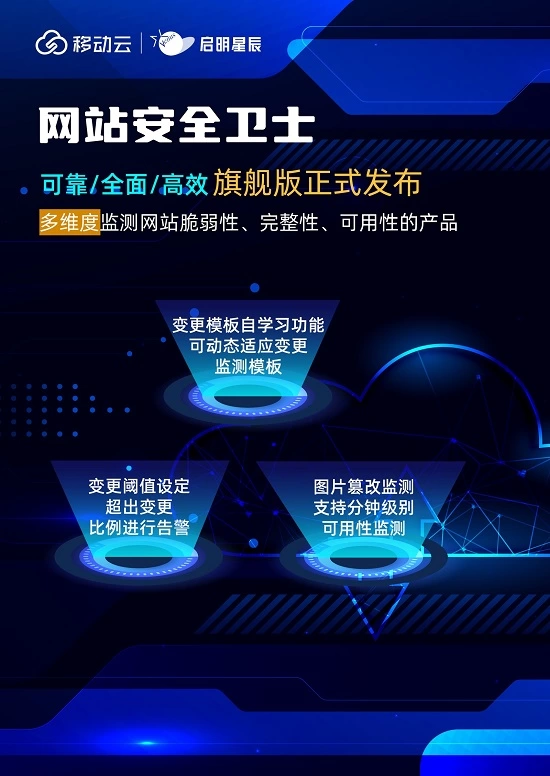 为满足大众安全用云、智慧用云的需求,中国移动云能力中心与启明星辰强强联合打造移动云|星辰安全—云网全域安全能力。此次合作深度融合信息技术与业务运营,提供全方位的网络安全防护和风险控制服务,满足国家合规要求和大众用云需求,护航数字中国未来发展。