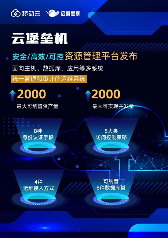 全新云堡垒机是一款依托移动云架构服务打造的即开即用,自动化部署的安全、高效、可控的资源管理平台,有效解决行业对资产纳管、运维、审计、合规性的要求,提升优化了本地运维客户端。新增自动扫描本地运维工具、数据库协议命令级审计、oracle数据库变量绑定解析等产品能力。