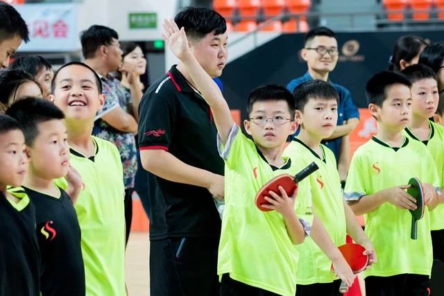 现场多位小球迷轮番上阵,对垒宋时超。其中一位小朋友童言无忌地发问:“宋教练,如果我打败你怎么办呀?”观众大呼其可爱!宋时超的球风凌冽、杀球力量巨大,小朋友的实力也不容小觑,旋转、落点的意识都非常强。两人把球拉得越来越远,你来我往十多回合,精彩的场面让观众们看得十分过瘾!