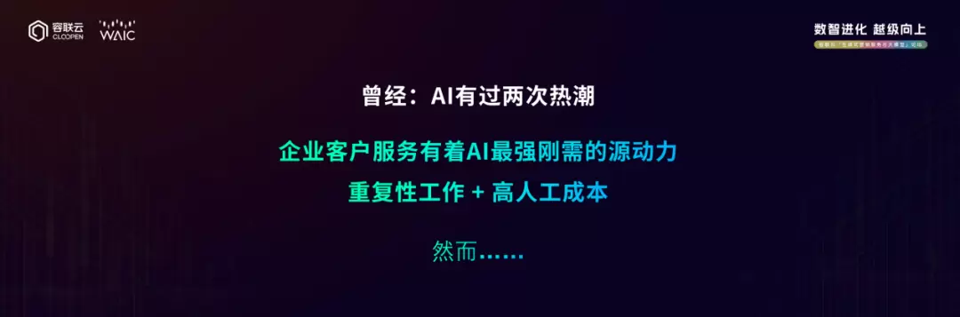 过往几年,我们做了大量的智能客服的运用,在智能客服领域中,我们经历了整个AI时代,其中包括AI两波最高峰的应用的热潮,包括基于规则、深度学习的。