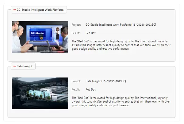 其中,红点传达设计奖是红点奖重要分支之一,其全称为“红点品牌与视觉传达设计奖”,主要收录世界优秀的视觉艺术设计作品。此次获奖的移动云数据可视化DataInsight与GC-Studio智作平台,不仅有优秀的设计理念、新颖的视觉界面设计,并且还能够满足当下各类业务场景的数智化需求。