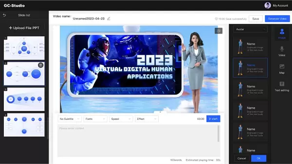 GC-Studio通过最大限度减少传统视频制作的人工介入,有效降低使用门槛、提升交互体验,大幅节约了人力资源和物力消耗。企业只需设置数字人参数,即可获得一个适合公司形象的、专业的、可24小时无间断工作的数字讲解员。