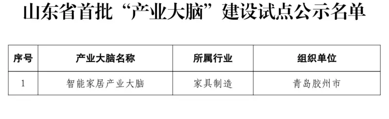 近日,山东省工业和信息化厅公示了山东省首批“产业大脑”建设试点和入库培育名单,由少海汇联合建设的青岛胶州智能家居产业大脑项目入选山东省首批“产业大脑”建设试点名单。