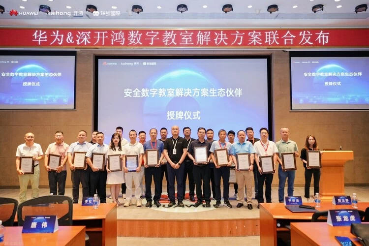 发布会现场还举行了生态伙伴授牌仪式,深开鸿为在教育行业大力探索并持续深耕的合作伙伴授予证书。于世杰表示,深开鸿通过身份品牌、解决方案、商业模式、商务关系等为合作伙伴提供有效赋能,与合作伙伴共创共赢,共同推进行业数字化转型升级。