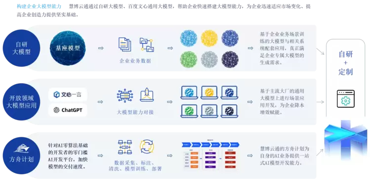 据悉,慧博云通自2017年开始对人工智能技术进行探索,并通过在知识图谱、自然语言处理、智能对话、机器视觉等多个AI技术领域的研发投入,成功帮助各行业实现了企业智能助理、酒店智能服务、患者教育、政策合规、语音质检、智能培训室、3D可视化语言交互、医学文献智能检索、图像识别、生成式营销版面设计等生成式AI应用场景落地。目前,慧博云通已经积累了企业生成式AI模型定制服务、人工智能应用定制研发服务、一站式模型定制能力服务等多方面的经验和能力,能为企业提供智能营销、智能报表、智能检索等服务。