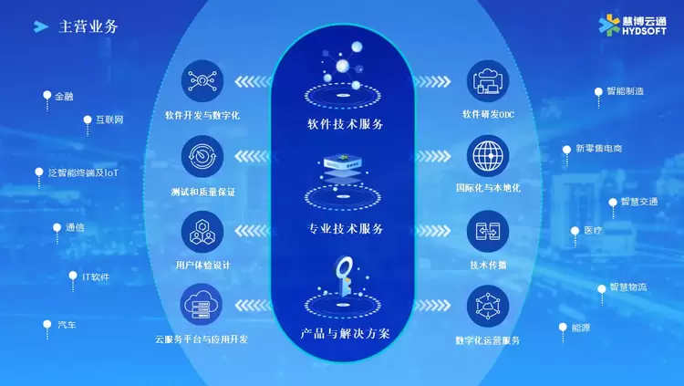 慧博云通以满足全球产业信息化升级与数字化转型需求为目标,基于对各行业客户业务场景的深刻理解,以软件技术专业人才为核心,专注于软件技术服务、专业技术服务、产品与解决方案,为客户数字化建设提供全方位支持。