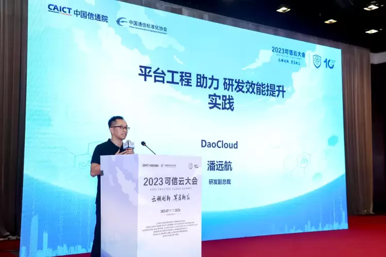 此外,DaoCloud 研发副总裁潘远航,参与可信云“平台工程与 SRE 分论坛”,并发表演讲《平台工程助力研发效能提升的实践》。他指出,作为 Gartner 2023 年重要战略技术趋势,“平台工程”旨在为企业的开发团队提供一个自助开发平台和最佳实践,助力效率的提升、业务的专注、标准的统一。基于我们生产落地的实践,分享我们如何配合客户的平台团队,规划和实现平台工程定义的平台能力。