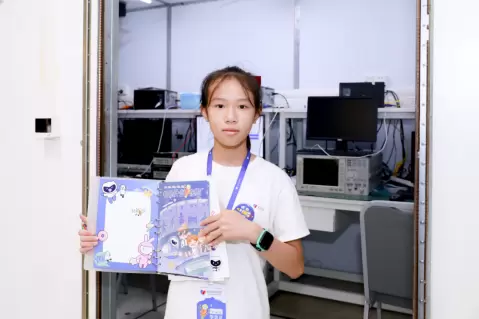 在实验室里,孩子们与vivo的工程师和设计师进行了互动交流,打卡完成了vivo实验室探秘任务,领取知识单页并收集成册,学习了科技和美学的相关知识和技能。
