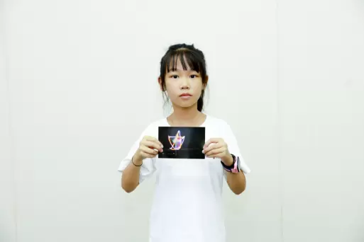 在光学实验室里,孩子们通过动手操作vivo手机,了解了手机广角镜头与长焦镜头的区别并亲手创作了一幅光绘摄影作品;