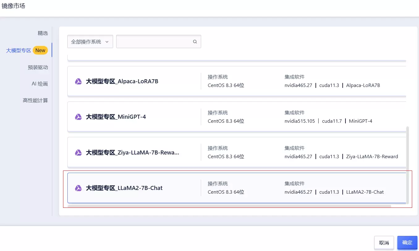 3.在选择镜像市场选择镜像,搜索LLaMA2