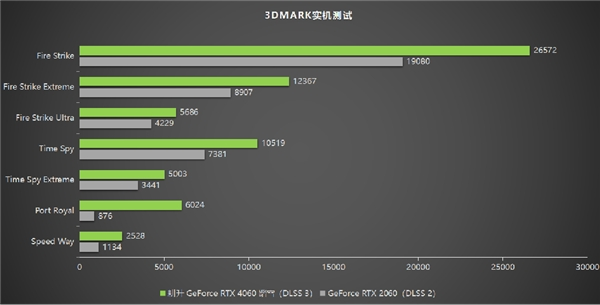 首先我们将使用3DMark进行相关的基准测试,来看看耕升 GeForce RTX 4060 踏雪与GeForce RTX 2060在基础性能上的比较。