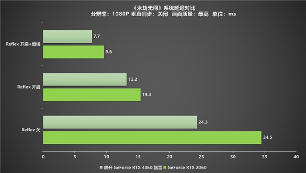Reflex带给玩家的提升,在《永劫无间》中将更为明显。通过数据可以发现,耕升 GeForce RTX 4060 踏雪在使用Reflex增强模式下,系统延迟将降幅至7.7ms。玩家在拼刀与连招时,将拥有更多的操作冗余,刀剑相拼的反应时间也比此前更多。耕升 GeForce RTX 4060踏雪可谓是玩家们在电竞领域的制胜法宝。