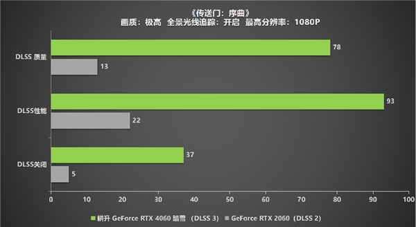 游戏内华丽的画面效果,则需要大量的性能提供支持。GeForce RTX 2060在运行《传送门:序曲》RTX版时,明显的遇到了一些问题。即使是在开启DLSS的情况下,运行开启了全景光线追踪的《传送门:序曲》RTX版也是相当的吃力,游戏运行时的帧率仅仅只有22帧,已然无法流畅的运行。而耕升 GeForce RTX 4060踏雪则在这项测试中,同前者拉开了相当巨大的差距。在开启DLSS 3性能模式后,游戏的帧率来到93帧,二者之间的性能差距,通过观察数据一目了然。DLSS 3作为NVIDIA研发的黑科技,的的确确的打破现有的性能格局。