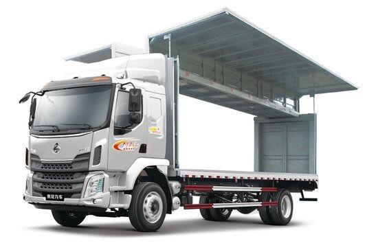 乘龙8.3米气囊飞翼车,货厢内控可达2850mm,满足两个托盘叠加,运输方量堪比常规9.6米。搭载国内首创后气囊桥,可以根据货台高度调节车厢高度,更方便快捷的装卸货物,装卸效率较常规车辆提升30%,极大提高赛事物资装卸效率。
