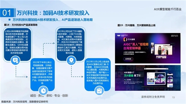 国内厂商同样在快速实现AIGC功能的落地和迭代。国泰君安分析师认为,万兴科技长期加码AI技术研发,AI产品逐渐进入落地期,同时积极拥抱大模型技术,推动AI产品力实现快速提升。