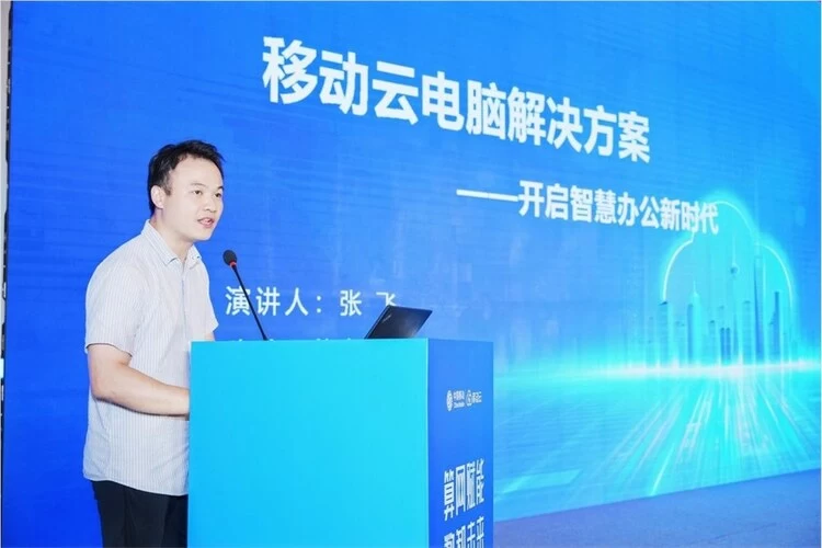 会议期间,中国移动云能力中心云解决方案专家张飞以《云电脑—开启智慧办公新时代》为主题分享,详细介绍了中国移动云电脑带来的生产力的革命性变化,有效提升了企业办公效能,为工业行业数智化转型升级注入“云端能量”。