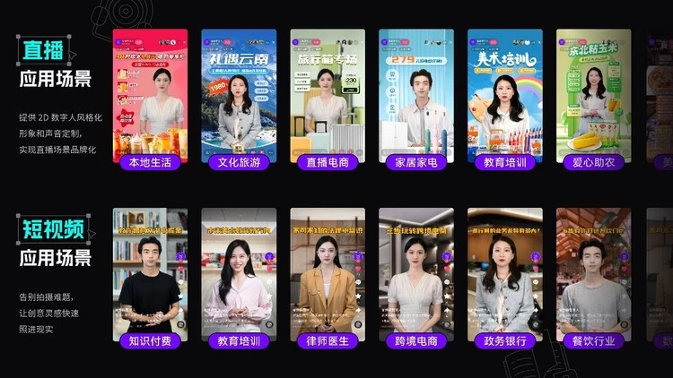 传统直播行业中,主播 IP 的影响力和个人魅力往往成为影响直播和短视频业务成功的关键因素,但这也带来了巨大的风险和不确定性。企业打造主播 IP 需要投入大量的时间和金钱,但却经常面临跳槽风险,无法实现稳定合作。而数字人技术可以高度还原主播 IP 形象,具备自主表达和交互能力,用技术对抗主播成本,完美解决了主播 IP 依赖的问题,让最好看、最有表现力的主播的最好的一面持续呈现。