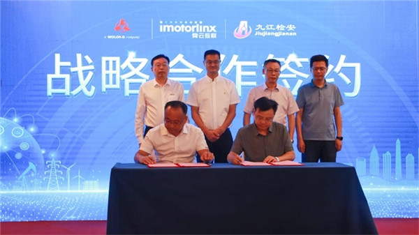论坛现场,在九江检安石化工程公司董事长吴胜辉先生、总经理万海英先生,浙江舜云互联技术有限公司副总裁马海林先生,iMotor全生命周期服务事业部总经理李云鹏先生的见证下,浙江舜云互联技术有限公司iMotor全生命周期服务事业部副总经理张毅先生和九江检安石化工程有限公司副总经理维保事业部总经理陈刚先生共同完成了舜云互联与九江检安的战略合作签约,并与邀约的九江石化、江西凯孚、萍乡萍钢、赛得利以及景德镇焦化5家企业领导共同完成江西数字化服务中心合作启动仪式。