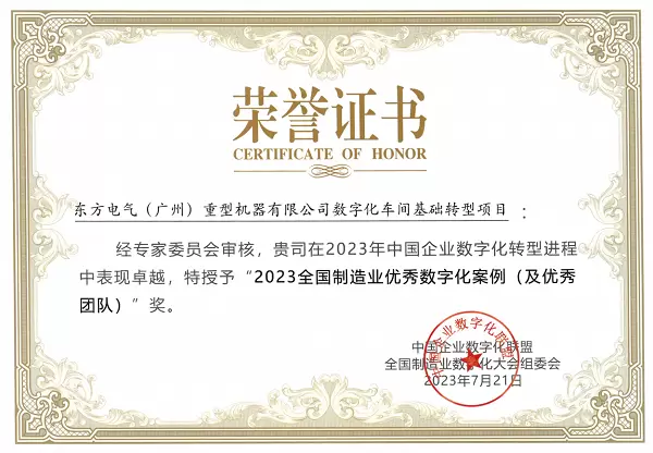 该项目作为制造业转型标杆案例,荣获了“2023全国制造业优秀数字化案例(及优秀团队)”奖。