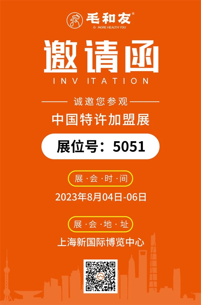 展会预热|毛和友烤鸡破圈出道,燃爆中国特许加盟展!8月4日-6日,毛和友邀您一起相约上海