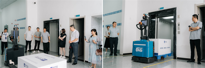 镭神智能通过在徐州自动化工厂部署了无人叉车梯控演示,现场演示无人叉车联通电梯控制,自主进出电梯完成货物的上下楼运输,助力工业上楼。