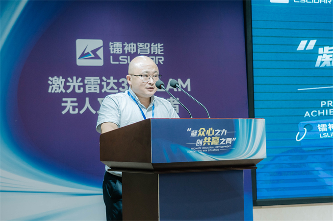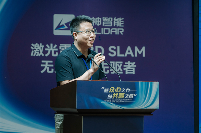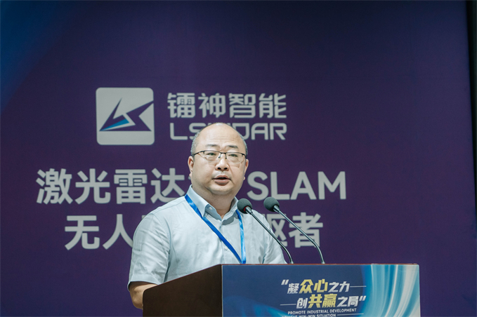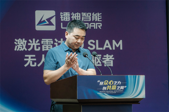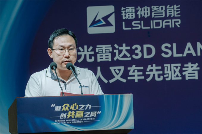 镭神智能创始人、董事长胡小波对所有与会领导嘉宾、行业客户及媒体朋友表示了热烈的欢迎与感谢,并激情讲述了镭神智能激光雷达3D SLAM无人叉车多年研发与应用的呕心历程与未来规划。