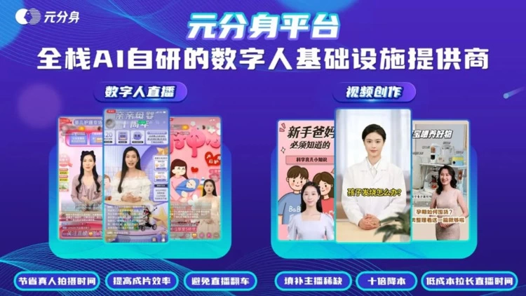 元分身平台,是国内领先的全栈AI技术自研的数字人基础设施提供商。在千亿数字人市场爆发之际,元分身平台基于十余年的技术沉淀,自研多模态AIGC与互动技术,已经为本地生活团购、品牌店铺、教育、医学、科技、金融等领域的数百万终端用户,成功打造各垂类行业应用解决方案,实现商业赋能。