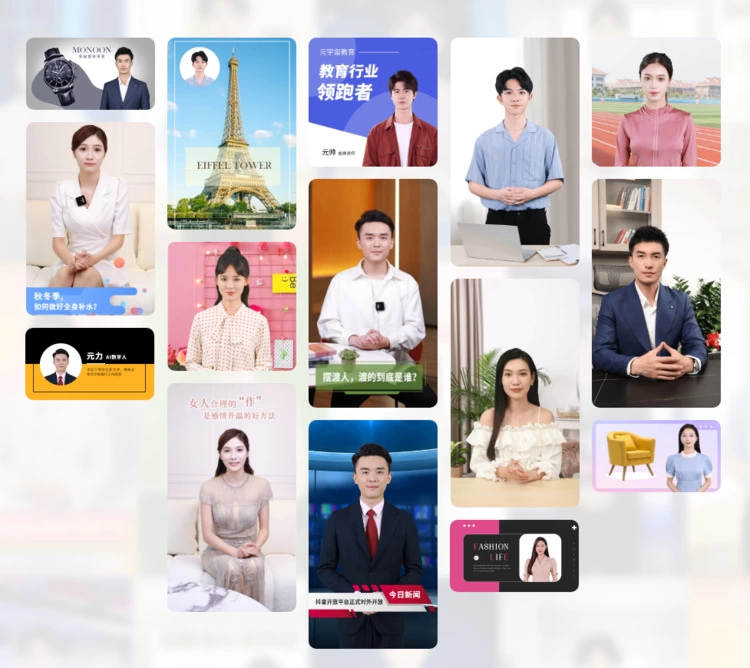 元分身数智人主播支持真人定制或选用平台模特。通过一段十几分钟的音视频复刻真人,便可生成还原本人形象、声音、表情、动作的数字人主播,拟真度接近100%。用户只需上传录音或者输入脚本文案,即可快速生成一条数字人口播视频,支持批量生产,十倍提升短视频内容制作的效率。目前,元分身已经有效帮助教育、医学、科技、金融、传媒等领域和各大MCN机构解放人力成本和时间成本,实现批量化视频制作,提升品牌IP在全平台曝光。