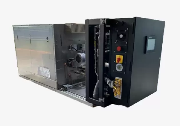 广东能创科技生产的甲醇水制氢机创造性地将传统甲醇大化工制氢工艺缩小为可移动的制氢设备,其工作原理是将甲醇水通入重整燃烧室进行反应,生成70%纯度的富氢,富氢通过钯膜提纯器后,获得高纯氢,供用氢设备利用。设备独有的热待机模式能实现30秒内开机制氢,达到真正意义上的即开即用。广东能创科技研制的制氢机有多种产氢速率,涵盖了每小时4m³-108m³的单模块系统,分为固定式和可移动式,可并机使用。HG2~HG7型号作为固定式制氢机,可运用于5-20kw的发电机当中。HG27~108型号作为可移动式的制氢机,多运用在重卡物流车或其他需要大量氢源的场景。