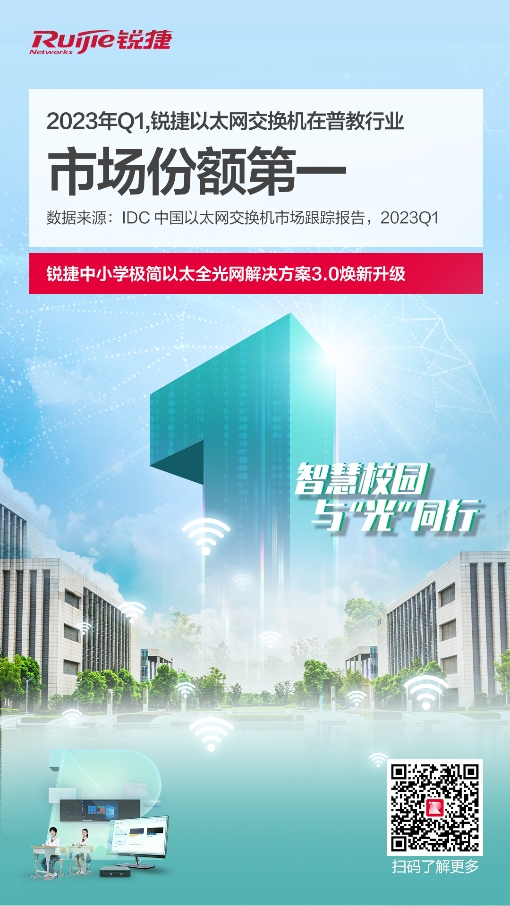 近日,IDC发布《IDC中国以太网交换机市场跟踪报告,2023Q1》报告显示,2023年第一季度,锐捷网络以太网交换机在普教行业市场份额排名第一。