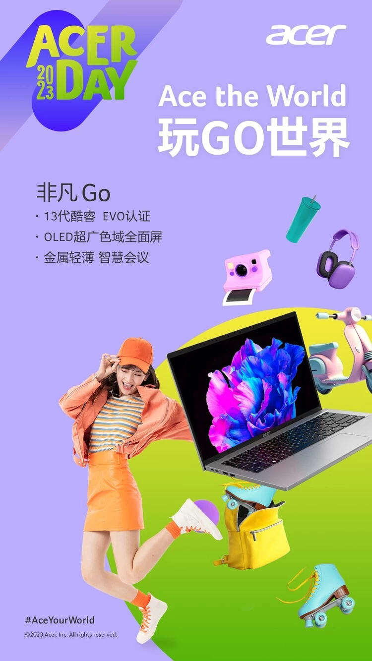 Acer Day全面来临,无论你是青春活力的追求者,还是创意与游戏的热爱者,宏碁笔记本电脑的多样产品线,为你提供了丰富的选择。赶快参与Acer Day活动,选购适合自己的笔记本电脑,体验品牌魅力,享受暑日的无限美好吧!让我们一起在"玩GO世界"的旅途中,与宏碁一同闪耀!