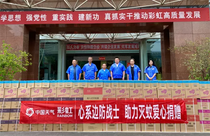 本次公益捐赠,彩虹集团向北湾边防部队捐赠价值6万元的灭蚊灯、蚊香、电蚊拍等物资。北湾边防部队、新疆阿勒泰哈巴河县气象站相关负责人出席了本次捐赠仪式。