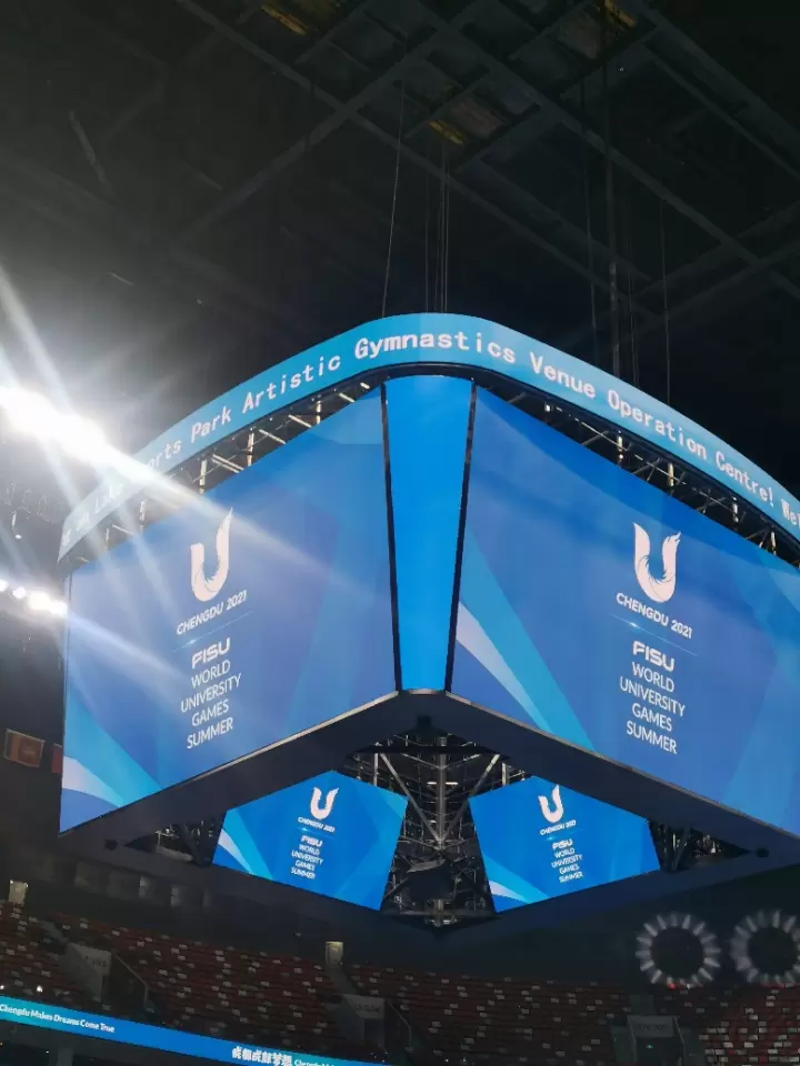 在本届成都大运会艺术体操项目的比赛场馆——成都体育学院综合馆内,就有两块三思制造的P6的室内全彩屏,显示面积总计110㎡,画面细腻流畅,恢弘大气的画面格外引人注目。