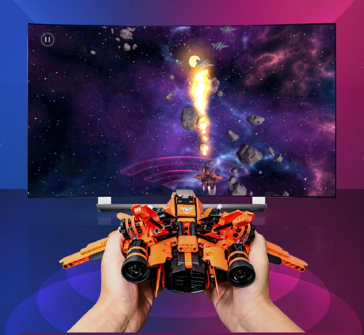 产品内置全新姿态传感器,配合对应体感积木应用,体感交互玩法拓宽使用场景,从小屏幕玩到电视大屏。告别单一的平台体验,体感战机支持智能电视、智能投影、电视盒子、手机、平板多种平台。还能实现多人同屏作战,尽享欢乐家庭时光。
