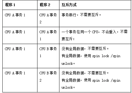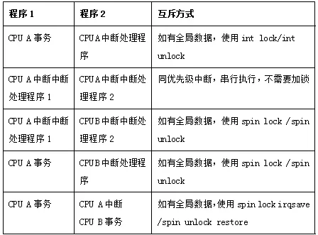 中断处理程序具备的抢占功能,可以满足系统里对于实时性要求高的场景,但同时也带来了中断和事务之间的互斥问题。中断和事务的互斥方式如图六。