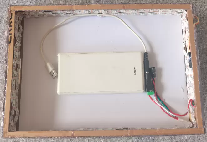 步骤一、纸盒制作灯箱,LED灯带用热熔胶固定在内侧
