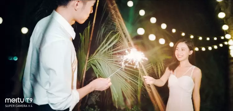 在拍摄夜景上,美图T9也是一把好手。这张照片是在近乎全黑的场景下拍摄的,成片中电火花的零星光点清晰可见,画面也没有出现噪点、人物拖影等,色彩还原、色调都有着相当出色的表现。