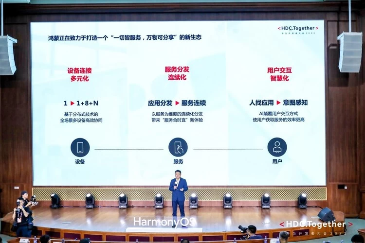 8月4日至6日,华为开发者大会2023(HDC.Together)正式开启。在8月5日举办的首届鸿蒙生态峰会中,华为终端云服务总裁朱勇刚以“众行远,携手打造全场景鸿蒙生态”为主题阐述了鸿蒙生态未来发展战略。他表示,“鸿蒙正在致力于打造一个‘一切皆服务,万物可分享’的新生态:在AI加持下,服务可以像语言一样更方便的被大模型理解,结合用户意图理解,形成服务动态组合,为用户提供“服务合时宜”的创新体验。通过服务连续化,鸿蒙生态为伙伴带来连续、智能、实时的“场景流量”,成为全场景服务分发的新入口,助力伙伴触达高端用户,带来新商机。”