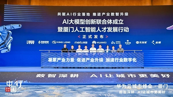 面向城市AI发展战略的未来,华为云还与中软国际、金蝶、应用现代化产业联盟、美图之家、金龙客车、华祥苑、厦门元地球科技、智业健康等多家企业和客户共同发起了AI大模型创新联合体成立暨厦门人工智能人才发展行动,未来多方将携手开展联合创新,共同构建高效协同的大模型&AI技术产业生态体系,同时为人工智能领域提供人才储备,共助厦门人工智能产业发展,推动构建现代产业体系。