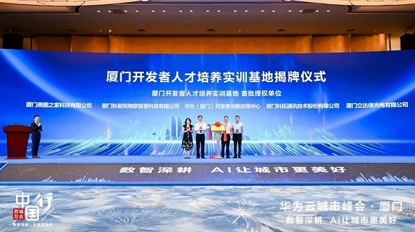 众所周知,作为一个技术快速迭代的创新领域,人工智能人才储备的深度将决定城市千行百业智能化转型的高度。在厦门开发者人才培养实训基地授牌环节中,厦门美图之家科技有限公司、厦门狄耐克物联智慧科技有限公司、华为(厦门)开发者创新应用中心、厦门科拓通讯技术股份有限公司、厦门立达信光电有限公司成为首批授权单位,正式加入华为开发者生态。这标志着华为云与厦门本地优秀企业将继续进行深度合作,在促进AI产业发展和人才培养的同时,形成更大的伙伴生态,共同助力厦门市数字经济更上层楼。
