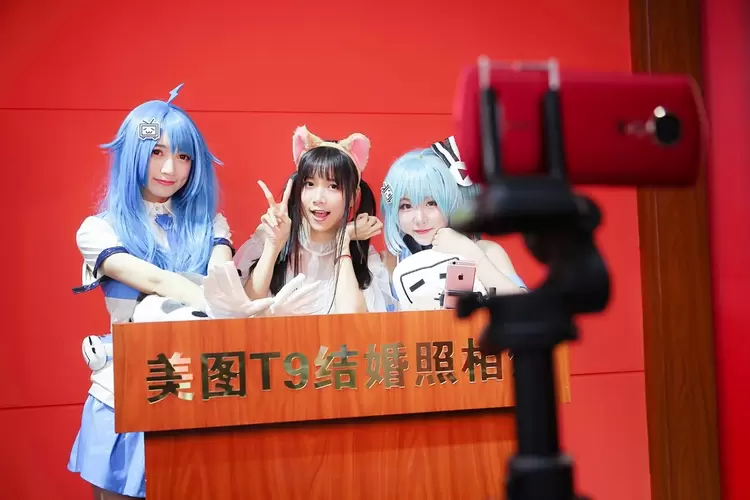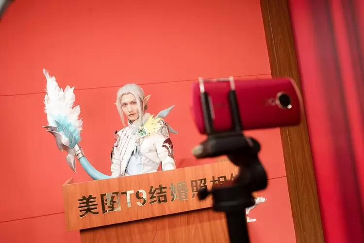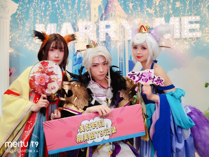 除了想要和男神女神们留下合影的粉丝,创意十足的场景布置也吸引到了不少“特殊嘉宾”的加入。Bilibili娘也带着可爱的妹子们留下结婚时刻。Coser们忙里偷闲,悄悄“抛下”粉丝们,在美图T9镜头前摆出了自己独家pose,玩得不亦乐乎。看来美图T9打造的酷炫有质感二次元大片的魅力,真的是谁也挡不住!